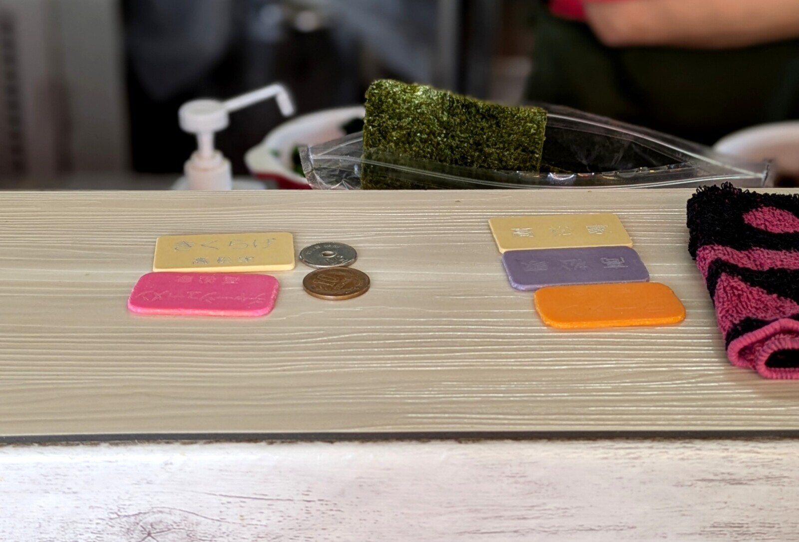 現金をカウンターに置いて注文するスタイルです。
