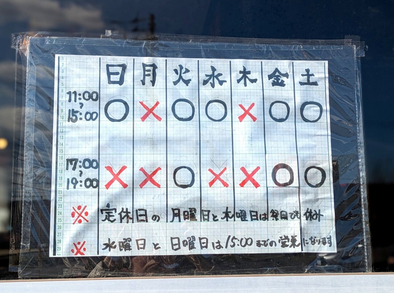 休み/月、木曜日(日、水曜は15時まで)