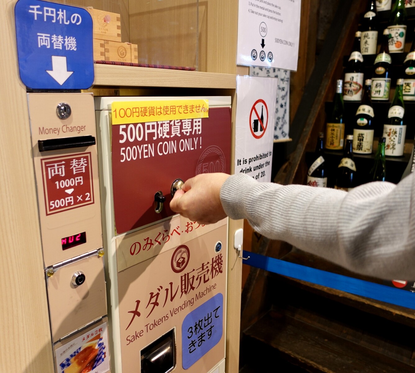 500円で3個メダルが出てきて、値段に応じて試飲できる仕組み。