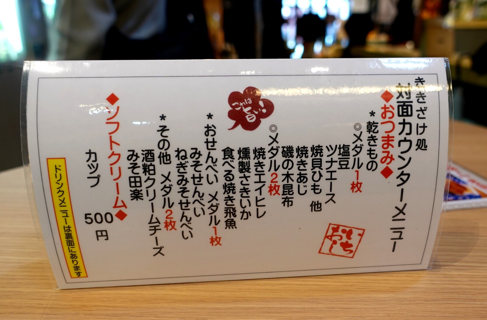 おつまみもたくさん揃っていて、こちらもメダルで買えます。