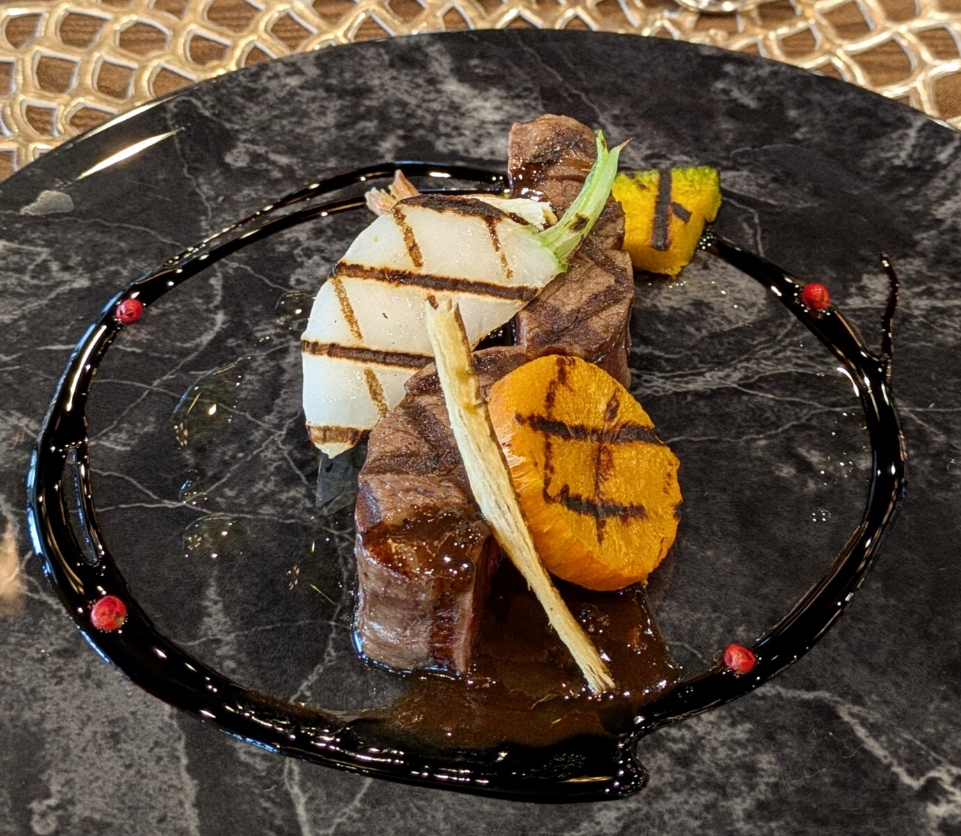 フィレ肉にはトリュフソース、周りをとりかこむバルサミコソース♡