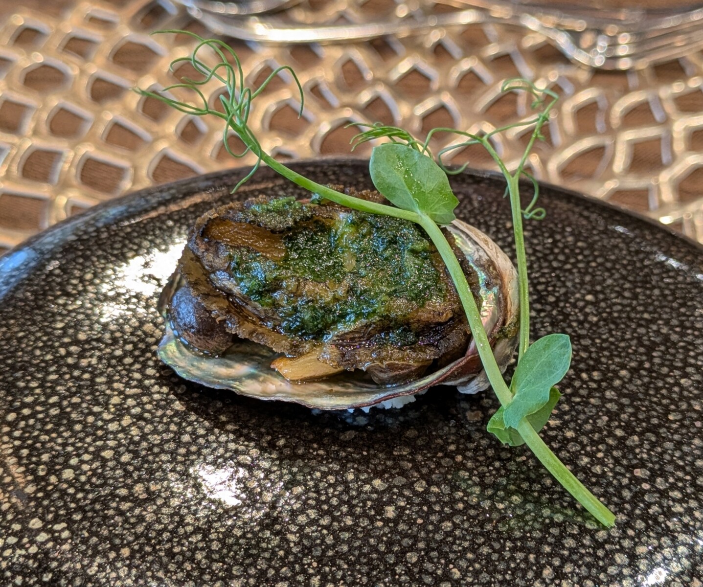 アワビは柔らかく火入れされていて、