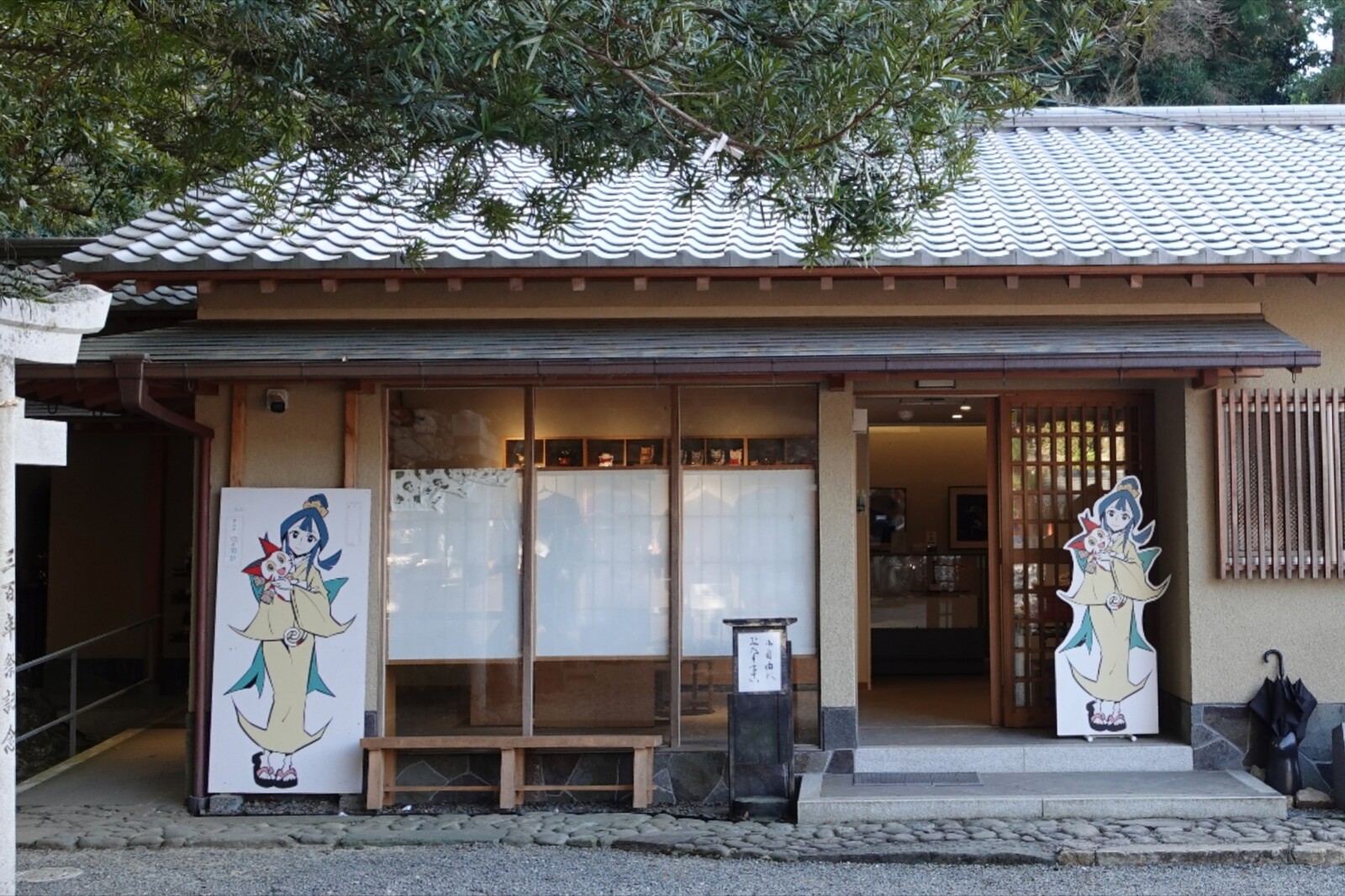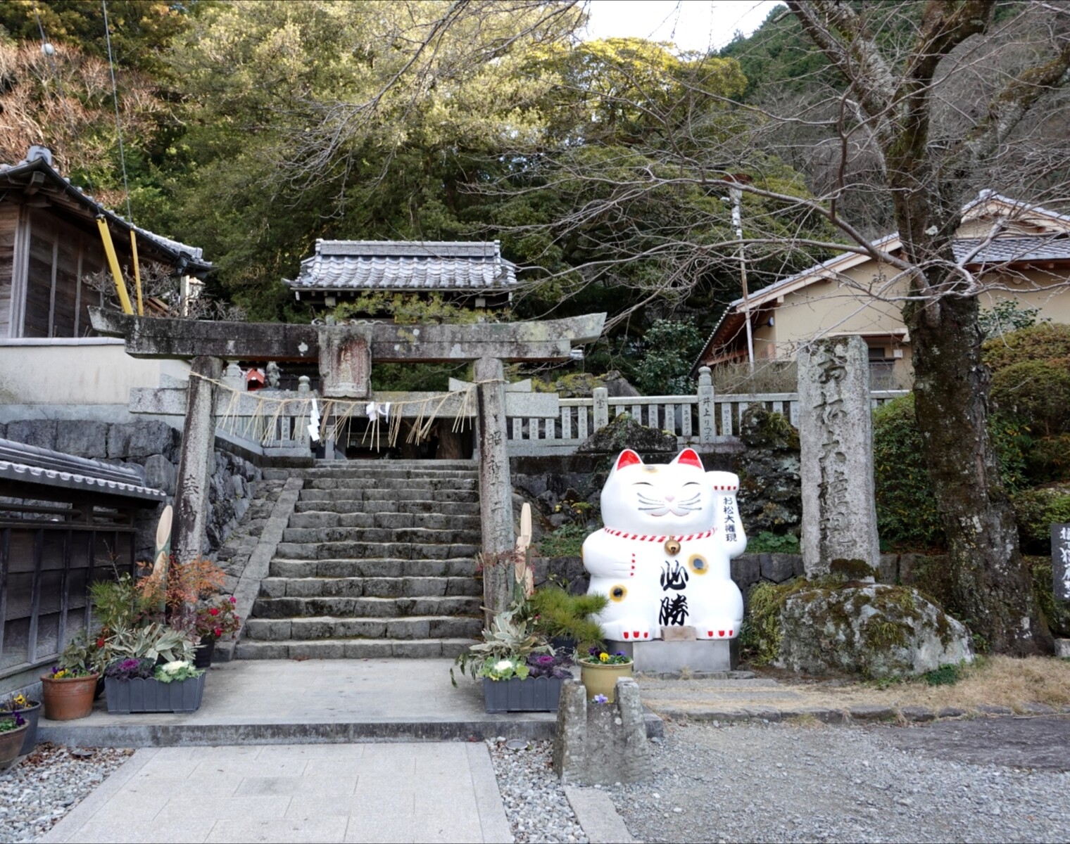 正門前に鎮座する高さ2mの大きな招き猫がお出迎え♡
