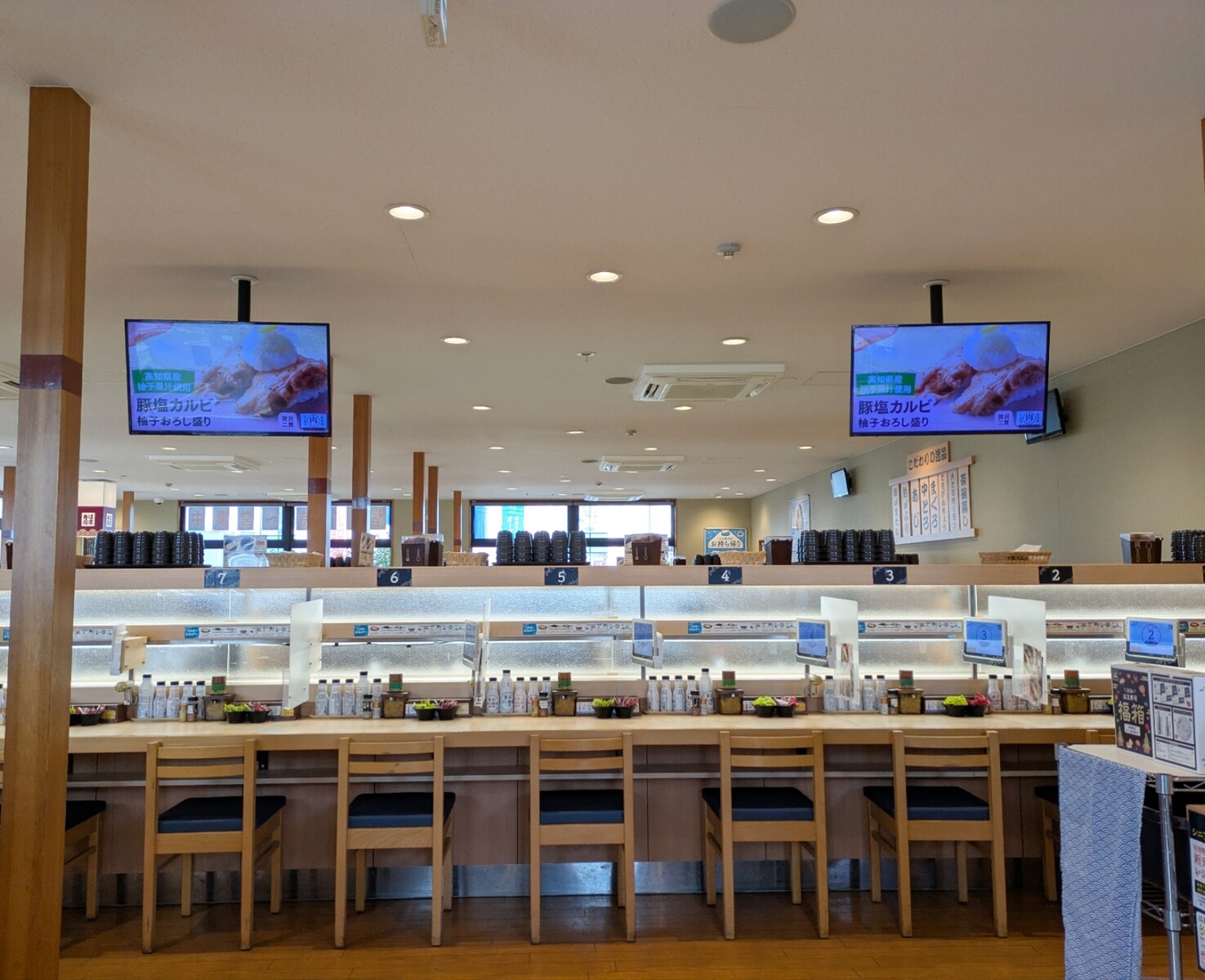 ヨシと、高松市十川西町にある回転寿司でランチ。