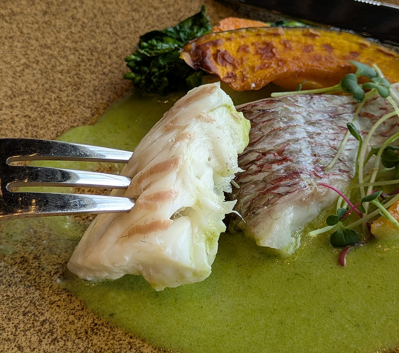 ・58℃で火入れした桜鯛と菜の花のクリームソース