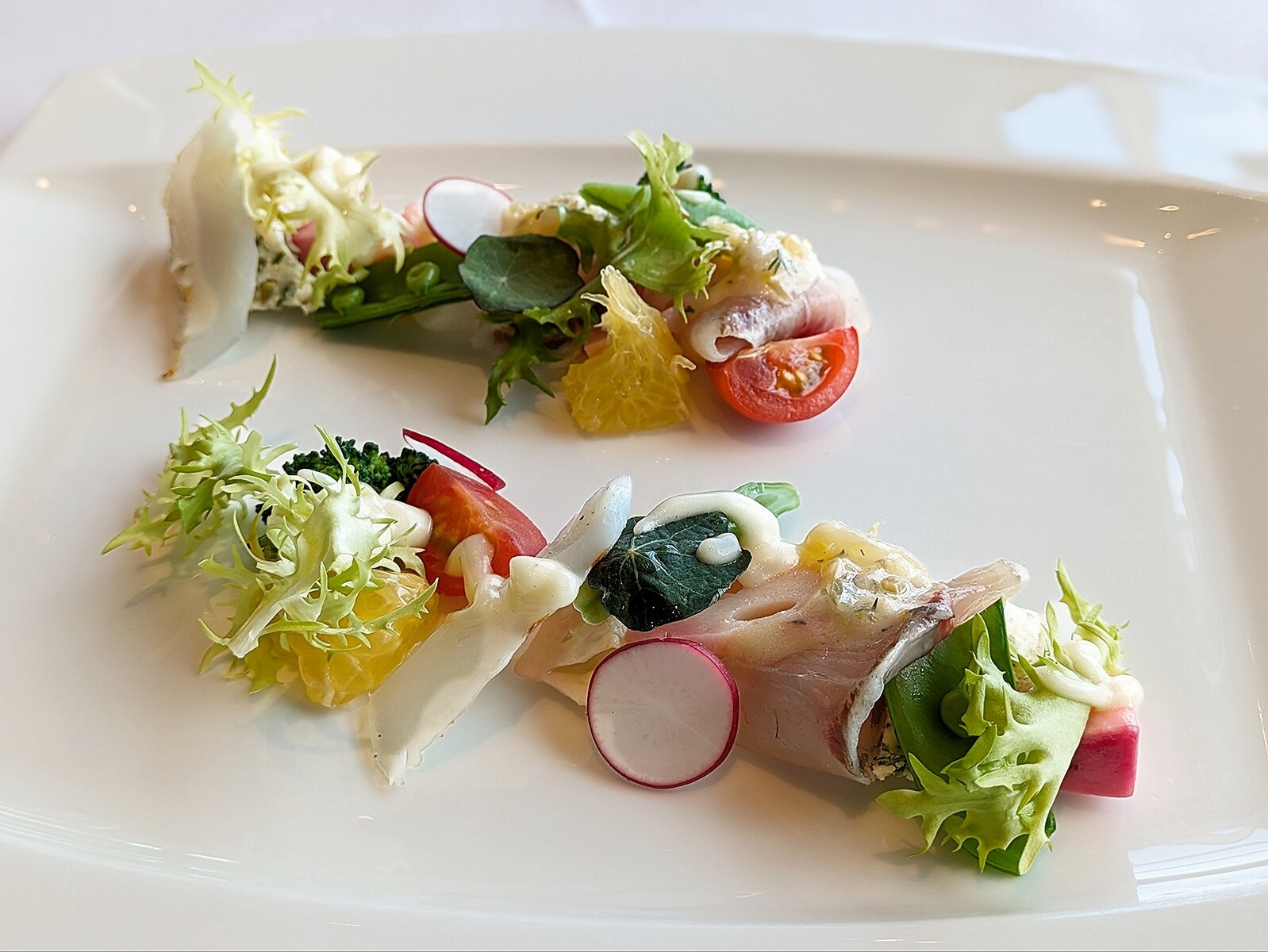 不知火のマルムラードを合わせた自家製リッコタジーズと春野菜