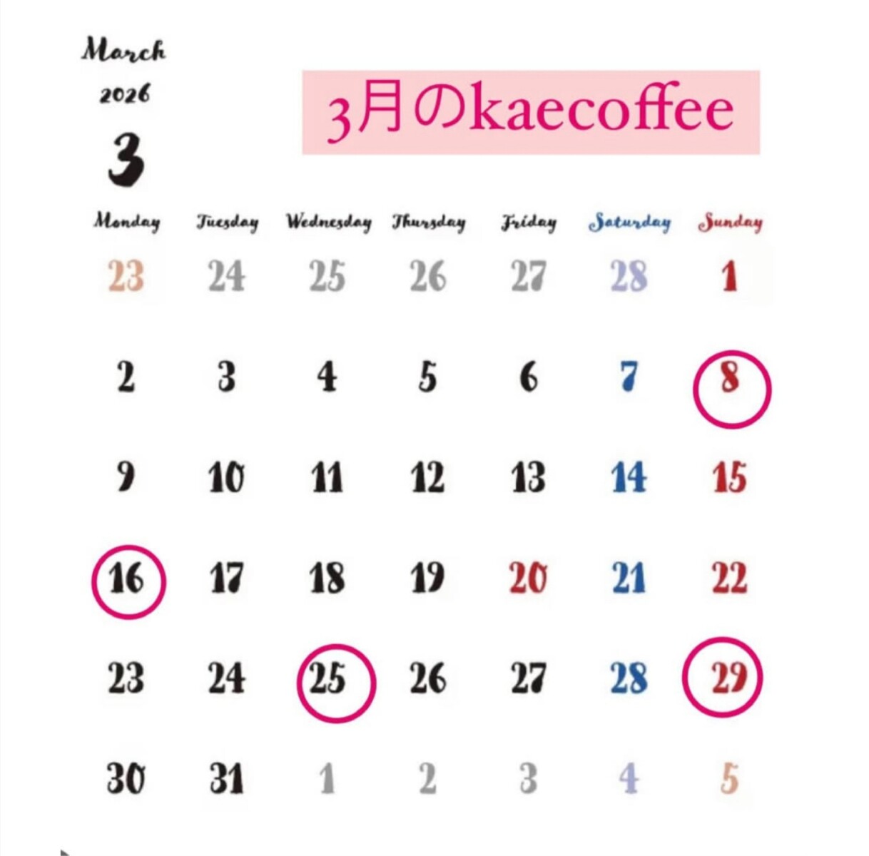 *毎月の営業スケジュールはインスタ投稿☑してね。